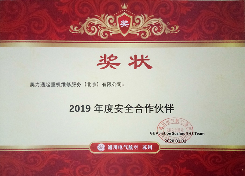 隨著2020年的到來,美好的一年再度啟程;新年伊始,奧力通起重機維保服務團隊收到了合作伙伴通用電氣(GE)航空集團的新年禮物---2019年度安全合作伙伴獎,以此表彰和感謝奧力通維保服務團隊長期以來為通用電氣(GE)航空集團提供的安全、質(zhì)量、高效的起重機維保服務。