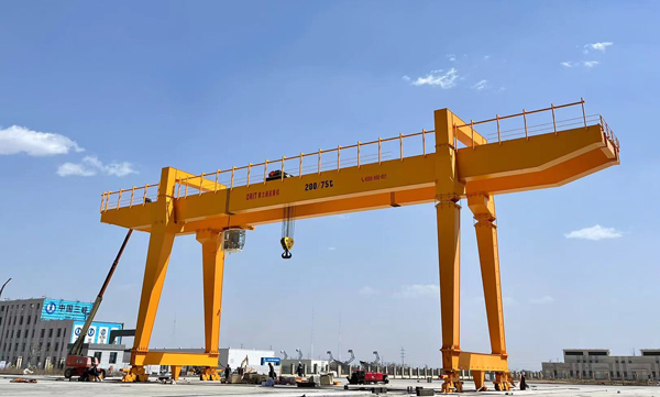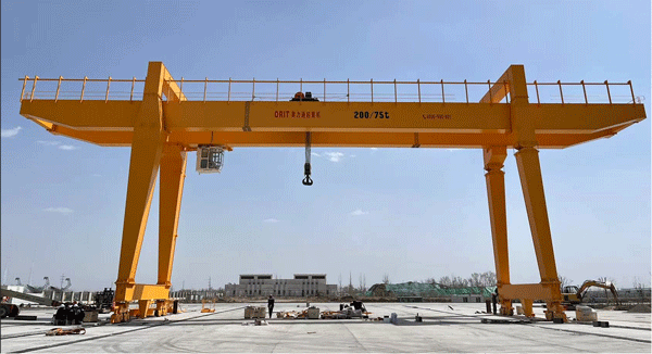 采用柔性技術(shù)和優(yōu)化設(shè)計(jì)的奧力通200tx52m雙梁門式起重機(jī),如大漠雄鷹,屹立在內(nèi)蒙古烏蘭察布市運(yùn)達(dá)風(fēng)電智能產(chǎn)業(yè)基地。