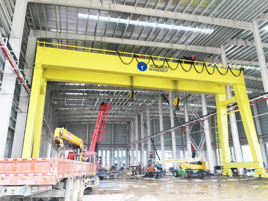 運達能源科技集團股份有限公司,作為行業內的標桿企業,多年來在新基地建設中采用奧力通的解決方案。2025年4月,溫州和昌新能源公司(浙江省溫州市)率先完成了新基地的起重機設備部署。緊接著,5月,阿拉善盟運達新能源公司(阿拉善左旗)也順利投產。這兩個新建風電主機基地,分別位于溫州海上風電和阿拉善路上風電領域,均采用了奧力通提供的大噸位龍門起重機設備。